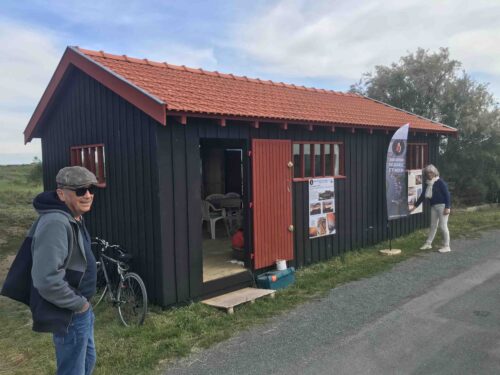 Nous avons ouvert la cabane à 10 heures avec le café. Avec les idées des uns et des autres, nous avons accroché les panneaux dans la cabane, 2 ont été exposés à l’extérieur (uniquement pendant les ouvertures de la cabane) avec la flamme, c’est une très belle accroche pour les passants. Nous avons eu beaucoup de visiteurs attirés par la lecture des panneaux.