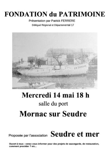 Une première pour Seudre et Mer, présentation de la Fondation du Patrimoine à l’initiative de notre commission Patrimoine.