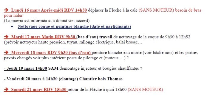 Préparation des Bateaux pour la saison   Entretien de la Flèche et de la Salicorne