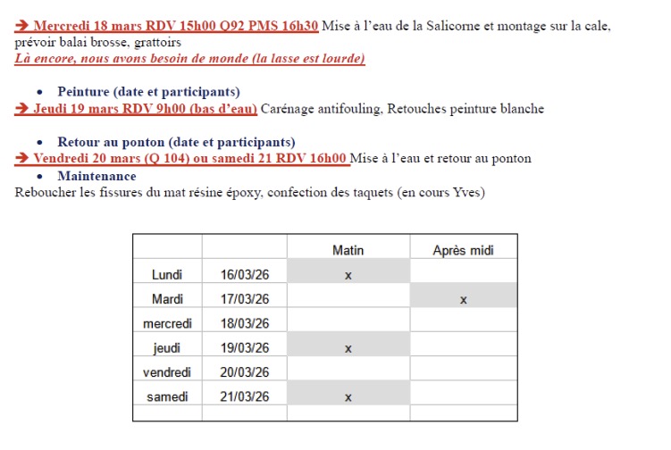 moteur et mise sur cale + retourner Salicorne) et travaux de nettoyage et peinture sur les 2 bateaux.
